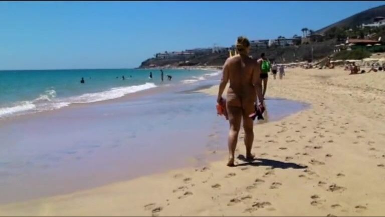 Trascorro alcuni giorni sulla spiaggia nudista di Fuerteventura. Rilassarmi al sole senza vestiti, ecco cosa mi piace.