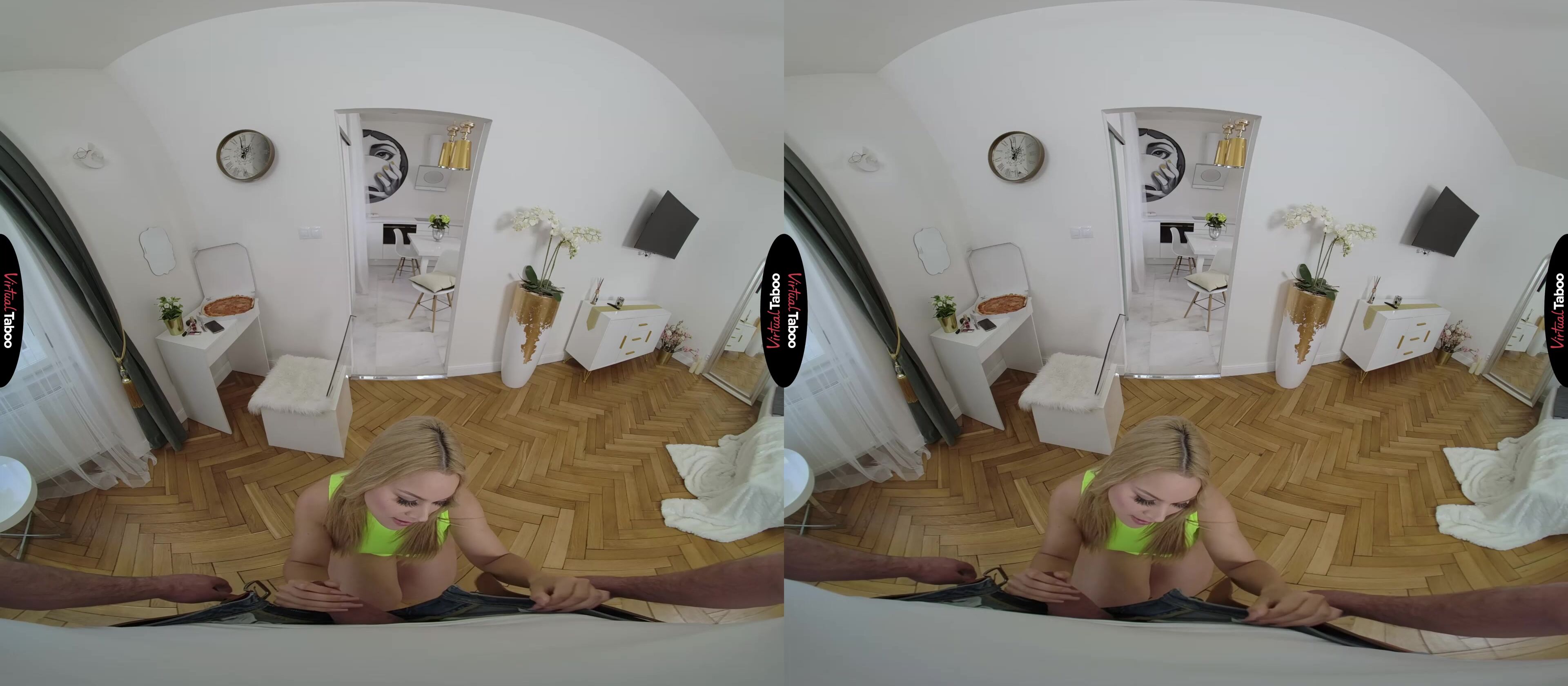 Sasha ha cercato di pensare a qualcosa di scandaloso da fare per i suoi follower sui social media. Vuole che sia divertente e sexy, quindi decide di organizzare una pizza/pigiama party virtuale. Dopo aver guardato un sacco di contenuti diversi con il suo visore VR, ha capito esattamente come le ragazze hot ordinano la pizza nel porno VR. Indossando un vestito sexy, è pronta a far partire le telecamere e ad aspettare il fattorino delle pizze. Sasha nota che il suo fratellastro la sta guardando e nota il rigonfiamento piuttosto enorme nei suoi pantaloni. Sorride, sapendo che il suo vestito deve essere perfetto se riesce anche solo a eccitarti. Il fattorino delle pizze si presenta, ma non è nemmeno lontanamente carino come te, quindi prende la pizza e gli chiude la porta in faccia. Decidendo che i suoi follower non hanno bisogno di sapere tutta la storia, ti dà la pizza e ti chiede se vuoi fare un gioco di ruolo con lei. Confuso, ma eccitato, accetti, interpretando il ruolo del fattorino delle pizze e tirando fuori il tuo cazzo quando lei si offre di darti una mancia speciale. Con la telecamera che gira, Sasha prende la tua carne in bocca e fa del suo meglio per succhiarti come una vera pornostar VR. La fai girare e la scopi da dietro, afferrandole i fianchi e tirandola indietro finché i vostri corpi non si scontrano rumorosamente. Sapendo che i suoi follower vogliono vedere qualcosa di cattivo, si mette sopra di te e cavalca in modo che possano guardare ogni centimetro penetrare nel suo buco stretto. Quando ti sente vicino, Sasha si inginocchia e ti implora di spararle tutto in faccia. Hai una grande carica in serbo che le riempie il sorriso, regalando al pubblico una fantastica conclusione di questa consegna speciale.