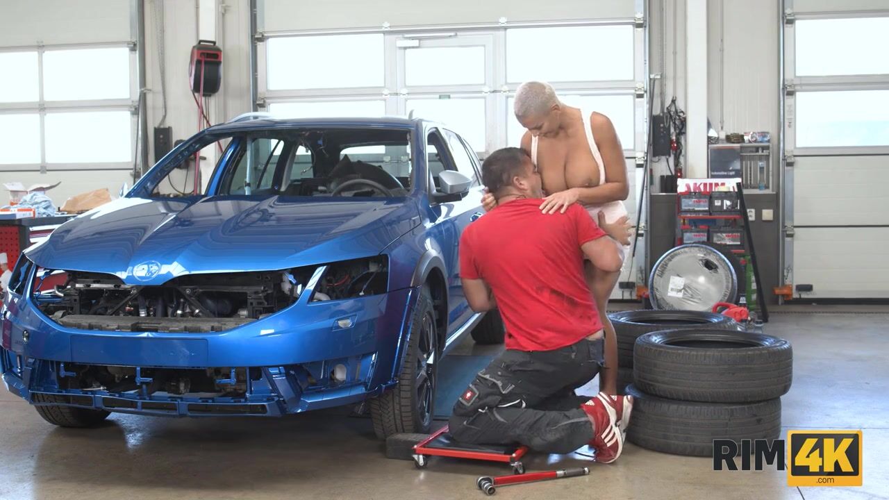 RIM4K. Una bella ragazza con la testa calva adora il culo del meccanico