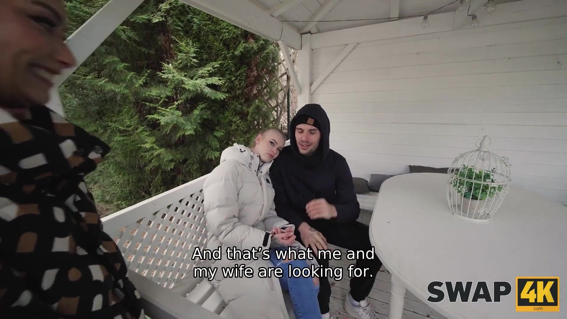 La nostra escursione di coppia ci ha portato a un altro incontro. Abbiamo incontrato una ragazza sola che aspettava il suo fidanzato. Con una cioccolata calda, l'abbiamo convinta a unirsi a noi. Mentre lui faceva la doccia, abbiamo iniziato un rapporto a tre, trasformandolo in un cornuto.
