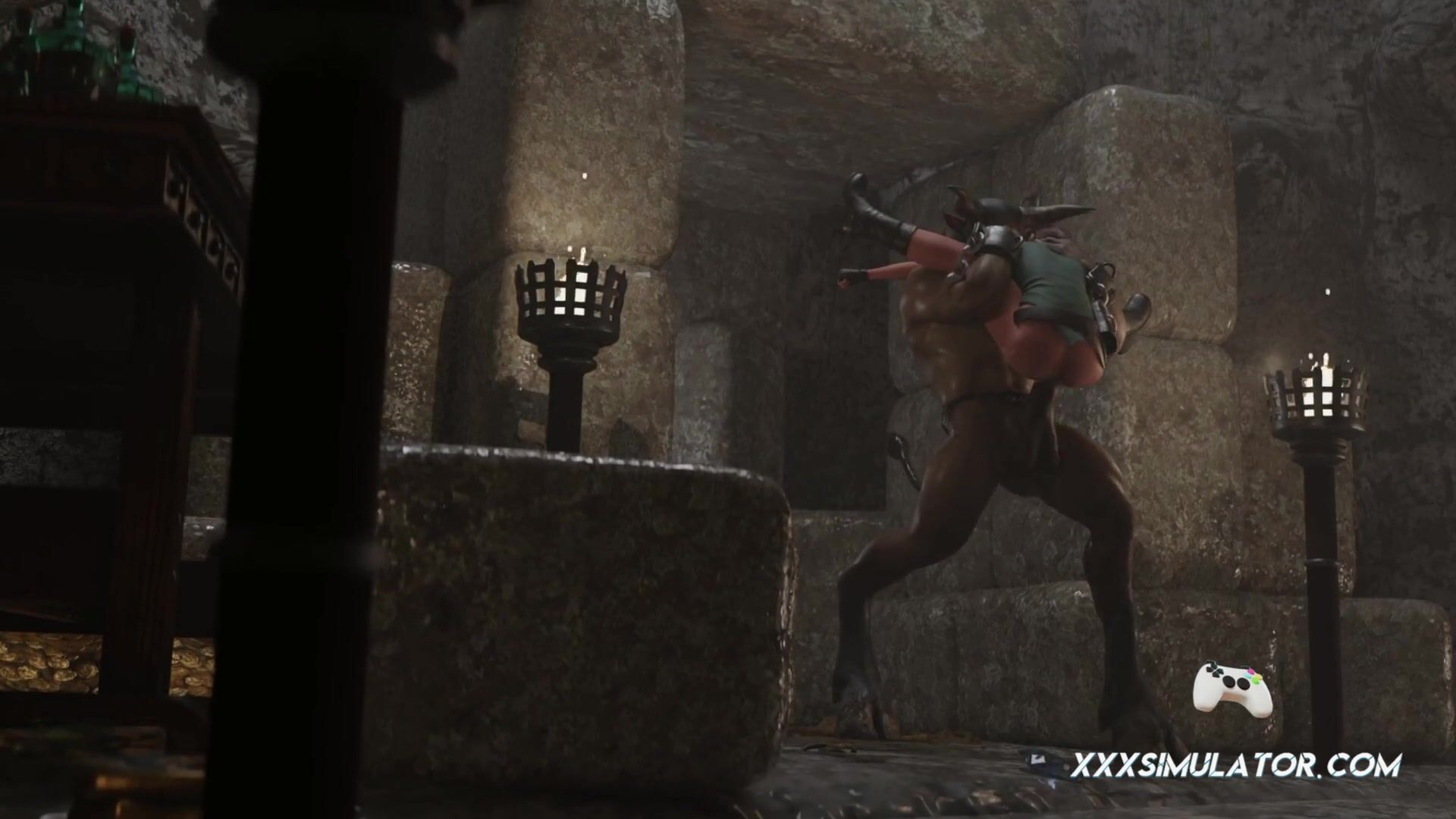 Una ragazza amazzone selvaggia viene legata e trascinata in un rituale tribale nella giungla. Vibrazioni di accoppiamento, gemiti e immagini esotiche da cartone animato dominano questa animazione.