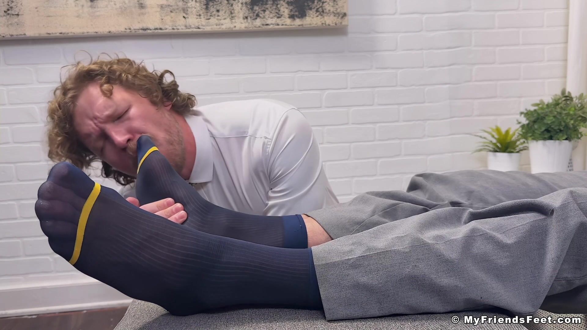 Ray voleva che Russ entrasse immediatamente per far sapere che Ray sarebbe diventato ufficialmente il suo manager e che avrebbe voluto aiutare anche Russ a raggiungere la vetta, a una condizione: adorare i piedi di Ray e aiutarlo a scendere, altrimenti sarebbe stato licenziato. A malincuore, Russ si inginocchia e inizia ad annusare e succhiare i calzini trasparenti di Ray, arrivando presto anche alle sue morbide piante. Alla fine, Russ ci riesce anche lui, permettendo a Ray di avere un orgasmo travolgente. Speriamo che a Russ non dispiaccia la confessione di Ray alla fine!